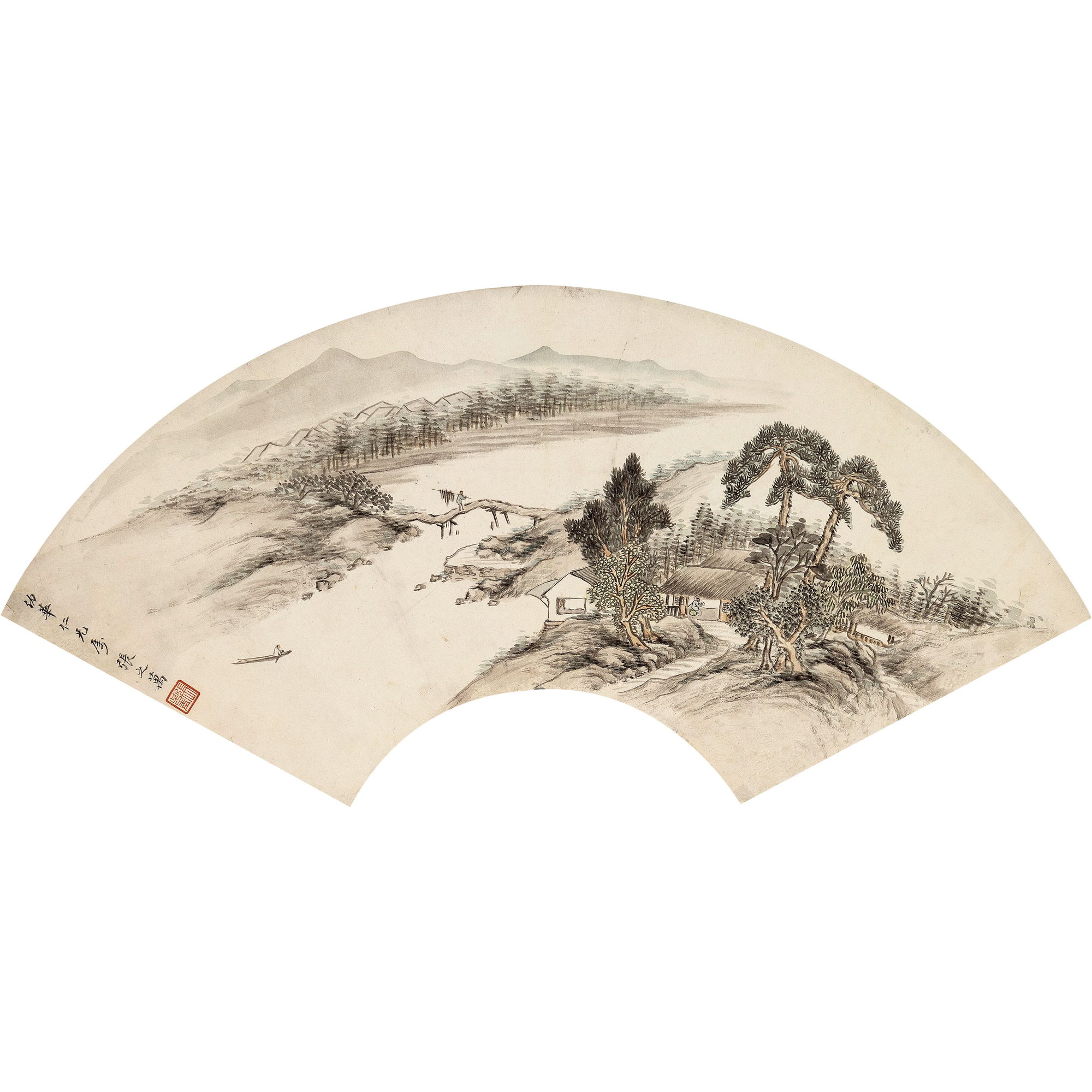 樵漁耕讀圖扇面