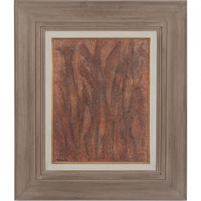 左下にサイン、裏面にサイン、タイトル、年代